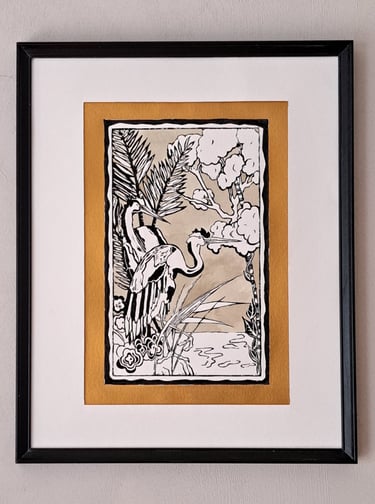 The linocuts are hand-printed on eco-friendly papers, ranging from 200 to 265 g, with water-based ink or solvent-free oil-based ink. The Heron on Lokta is printed on natural, durable, and slightly translucent Nepalese paper, allowing the fibers to show through. Sold without a frame or mat, the linocuts can easily be adapted to any frame of your choice. Limited to 30 per model, they come with a certificate of authenticity, signed and numbered on the bottom or back of the piece.