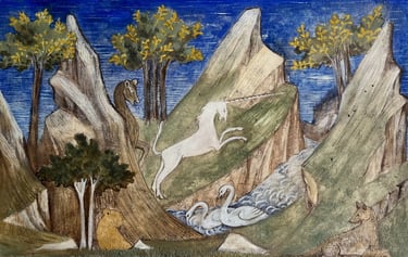 Nos techniques et inspirations varient en fonction de votre projet décoratif et des possibilités techniques. Un ornement peut venir élégamment habiller un manteau de cheminée, un paysage panoramique peut s'adapter à la taille d'une tête de lit, à un pan de mur, une entrée.